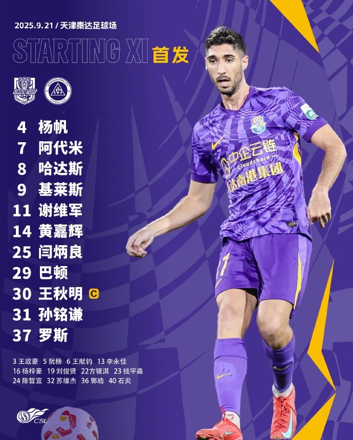 中超第25轮主场对阵深圳新鹏城,天津津门虎首发出炉!